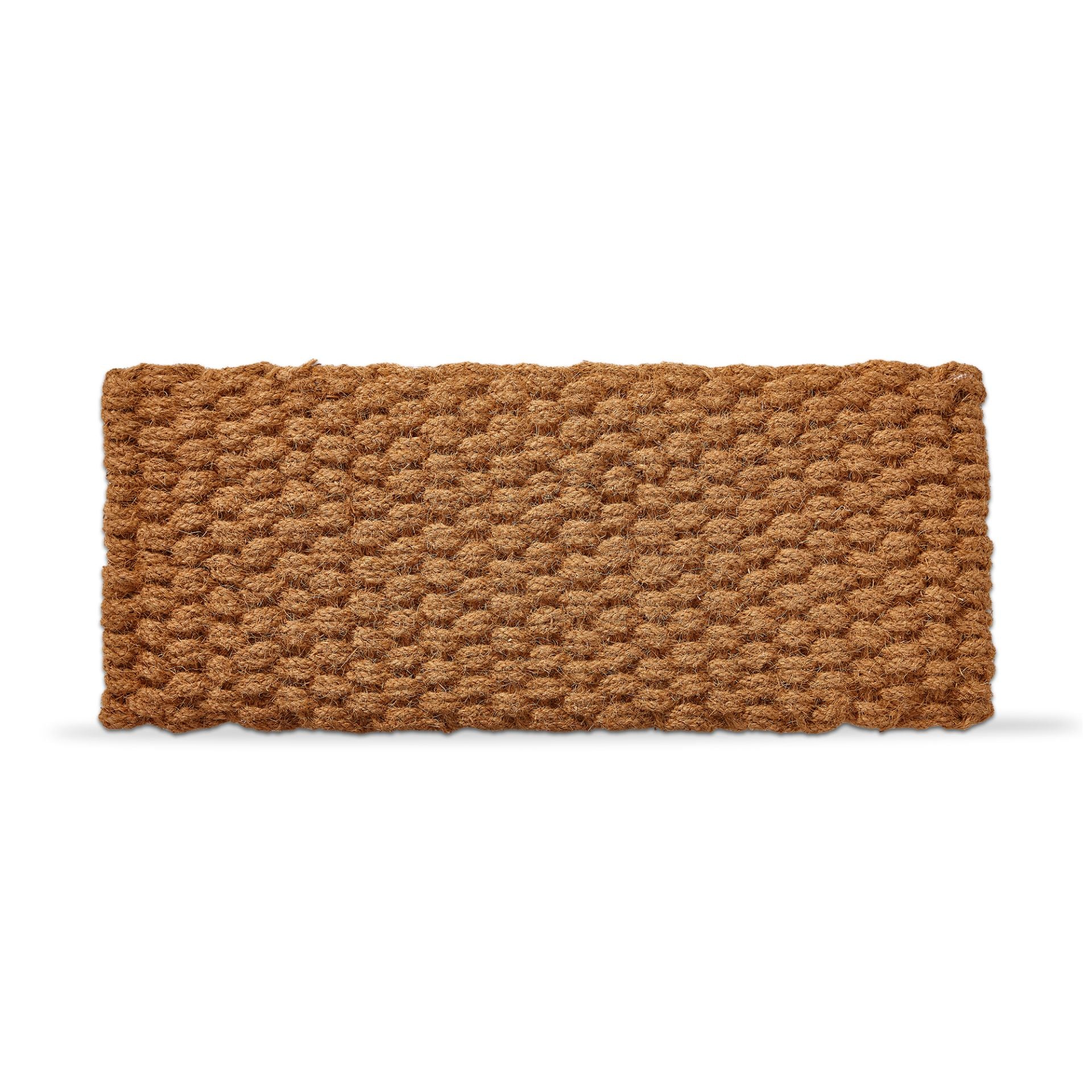 beautiful simplicity. this handwoven basketweave estate coir mat makes a stylish and eco-friendly statement at any doorstep. use in a variety of spaces—from front porches, mudrooms, foyers, decks, and more! it's the perfect way to welcome guests. coir is a natural, durable material made sustainably from coconut husks that is easy to care for. doormats have an attached header card with handle that allows for easy display and convenient handling.