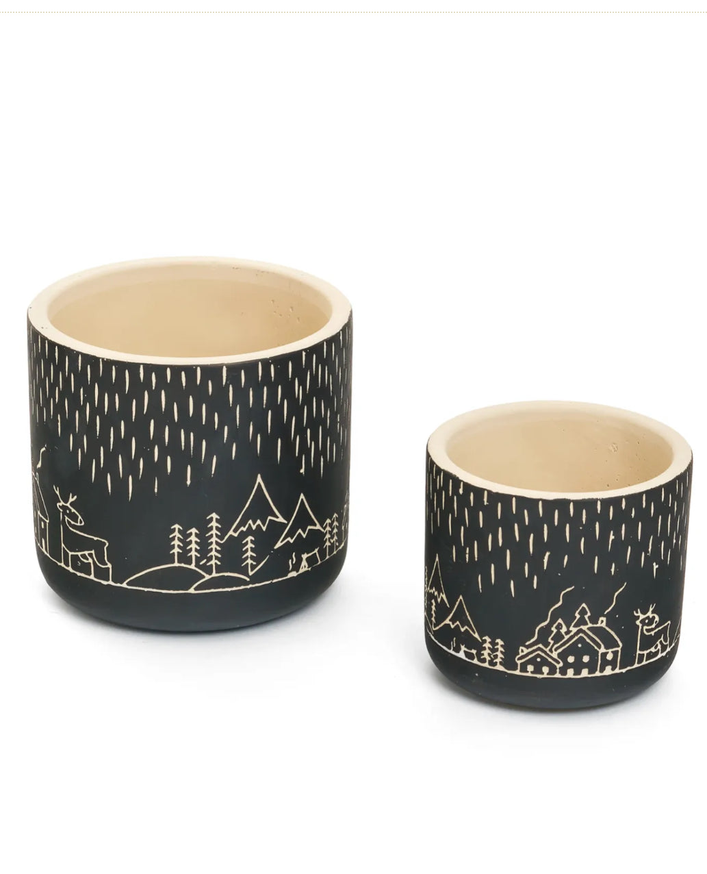 Introducing the Black Holiday Planter, perfect for adding a festive touch to your home decor. This beautifully crafted planter features an etched winter scene, bringing a touch of winter wonderland to any space. Made with durable materials, this planter is sure to last for many holiday seasons to come.