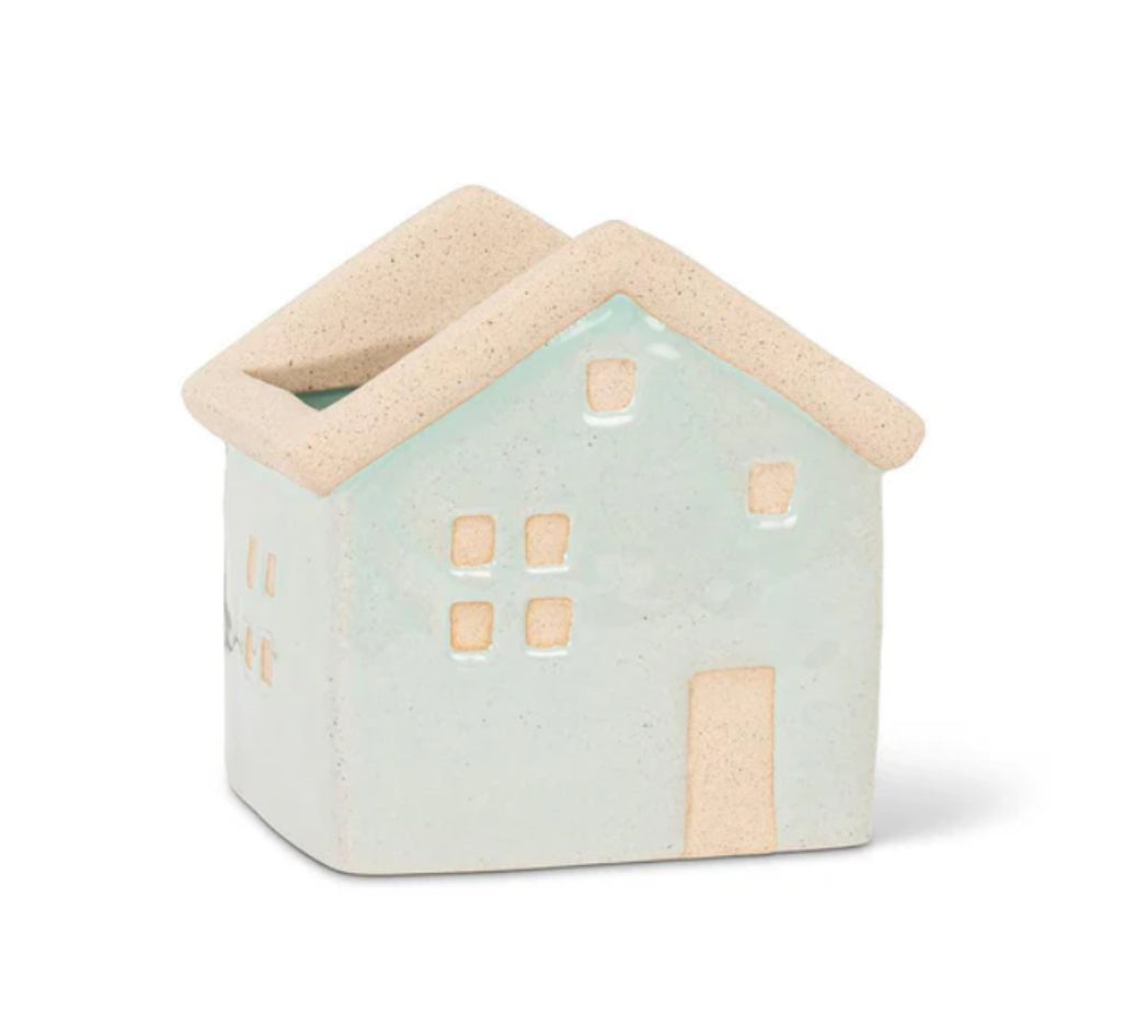Give your favourite flowers or blooms a home of their very own with this adorable Small House Planter! Crafted out of ceramic, this aqua-coloured, house-shaped flower pot is accented with peach windows, doors and trim to complement any colour of blooms or succulents.