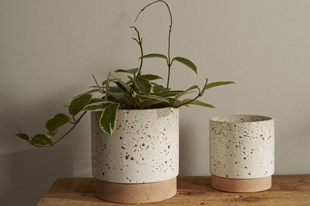 Introducing our Briar Pot, a beautiful and practical addition to any home. Made of white ceramic with a speckle design, this pot is perfect for showcasing your favorite plants. The terracotta textured saucer provides drainage and adds a rustic touch. Create a stunning display with this versatile pot.