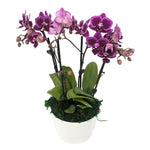 Give your home a touch of elegance with our Cancun Double Mini Orchid Planter. Featuring two delicate mini orchid plants, this planter comes in a pristine white ceramic pot. Bring a pop of color and life to any room with this beautiful and low-maintenance addition to your decor.