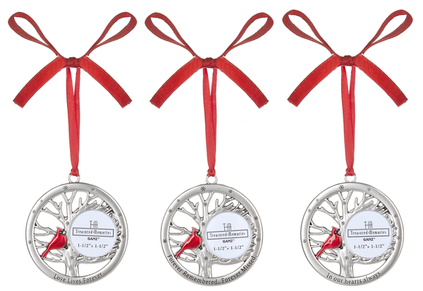 Honor and cherish the memory of your lost loved one with our Cardinal Photo Memorial Ornaments. Featuring a beautiful silver design, each ornament includes a heartfelt sentiment and a special place for a photo. Keep their spirit close this holiday season.