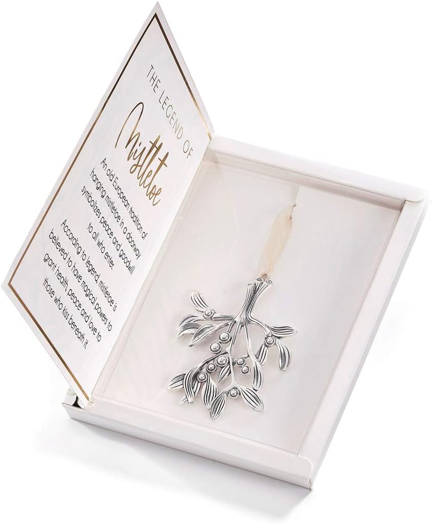 Add some festive charm to your tree with "The Legend Of Mistletoe" Ornament. Made of durable metal, this ornament features a beautifully crafted mistletoe design hanging from a delicate ribbon. Hang it on your tree and let the magic of the season fill your home.