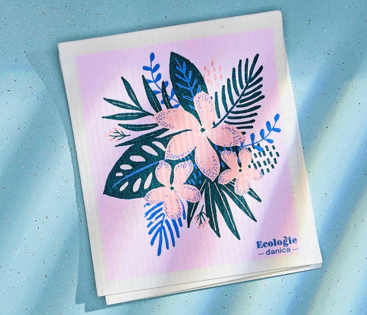 To clean, toss in the washing machine or place on the top rack of the dishwasher. Lay flat to dry. When your Swedish sponge cloth has reached the end of its lifecycle (9 months or even more!), toss in the compost.