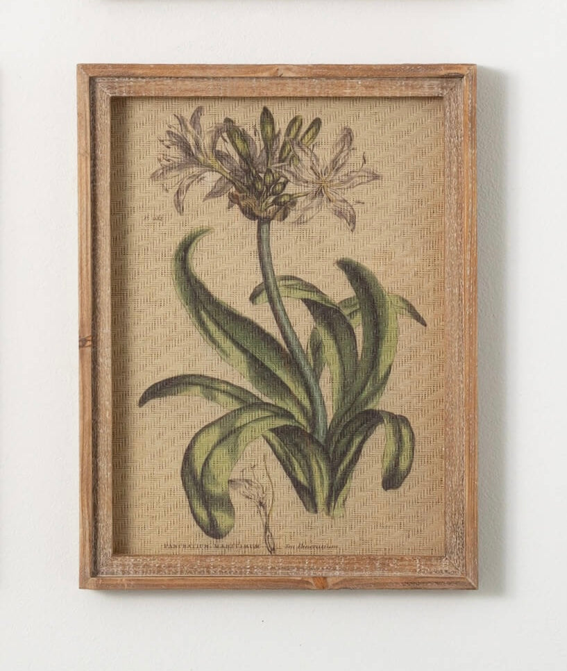 A study in the world of natural specimens, this four-piece framed set of prints is inspired by the study of blooming botanicals. Each measures over 12" x 16" in size and looks great on display as a single, pair, or entire grouping! Printed on a linen cover, the muted tones are protected under glass to create artwork that flows seamlessly within your decor.