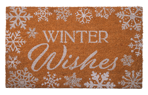 Welcome your guests with winter cheer using our Winter Wishes Doormat. Made from durable outdoor coco coir, this mat features elegant white writing and snowflakes for a festive touch to your doorstep. Keep your home clean and stylish this holiday season with our Winter Wishes Doormat.