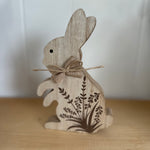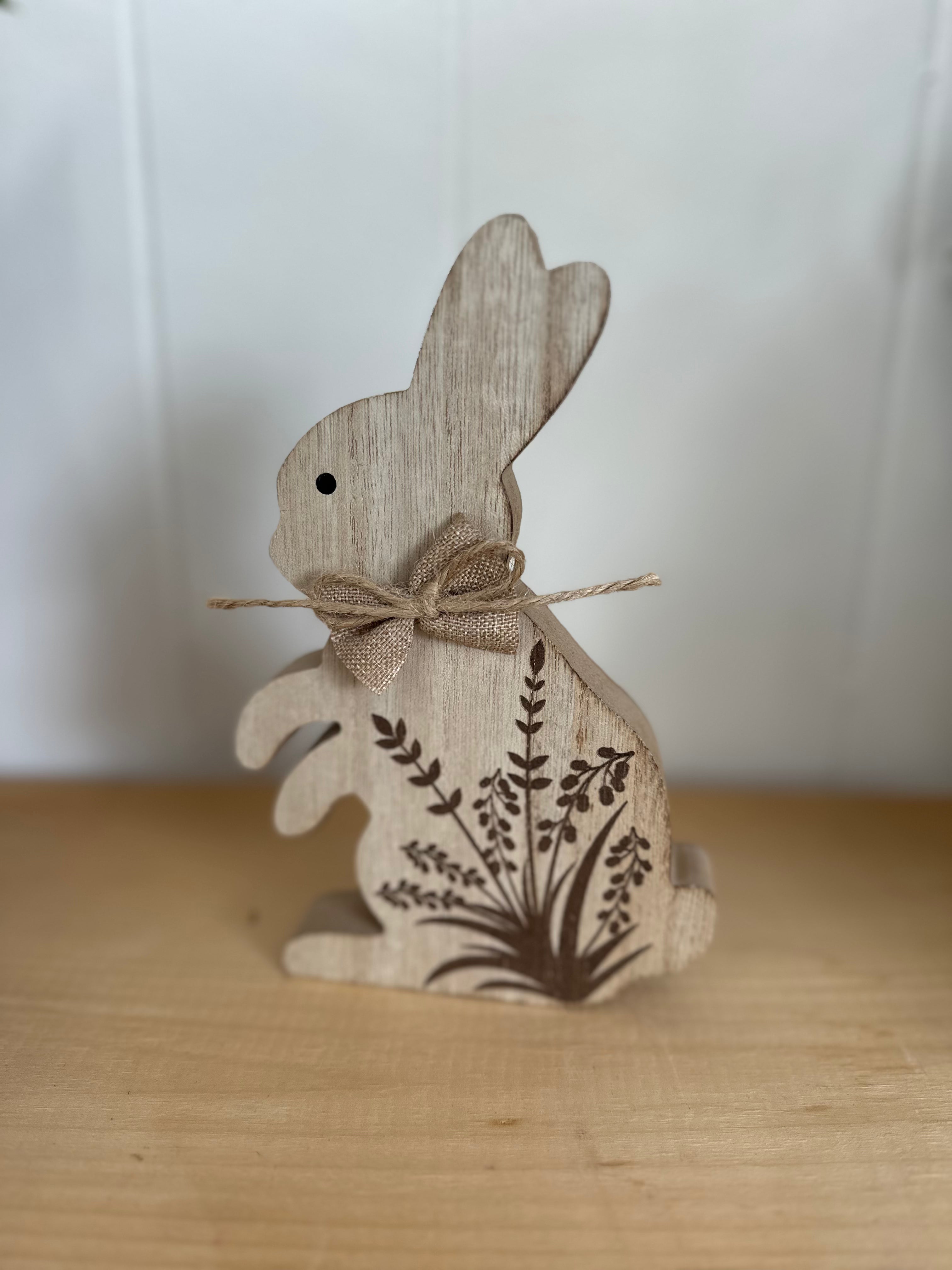 Elevate your home decor with our handcrafted Wooden Bunny Decor. Adorned with a delicate engraved floral design, this charming piece brings a touch of nature and elegance to any space. Add a warm and inviting ambiance to your living room, bedroom, or entryway with this unique and timeless decor.