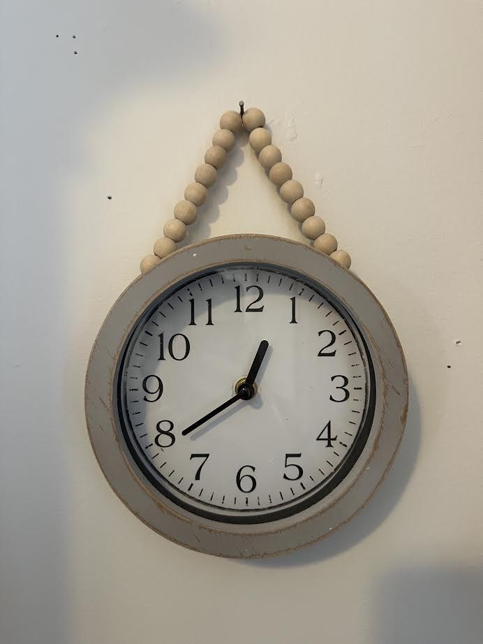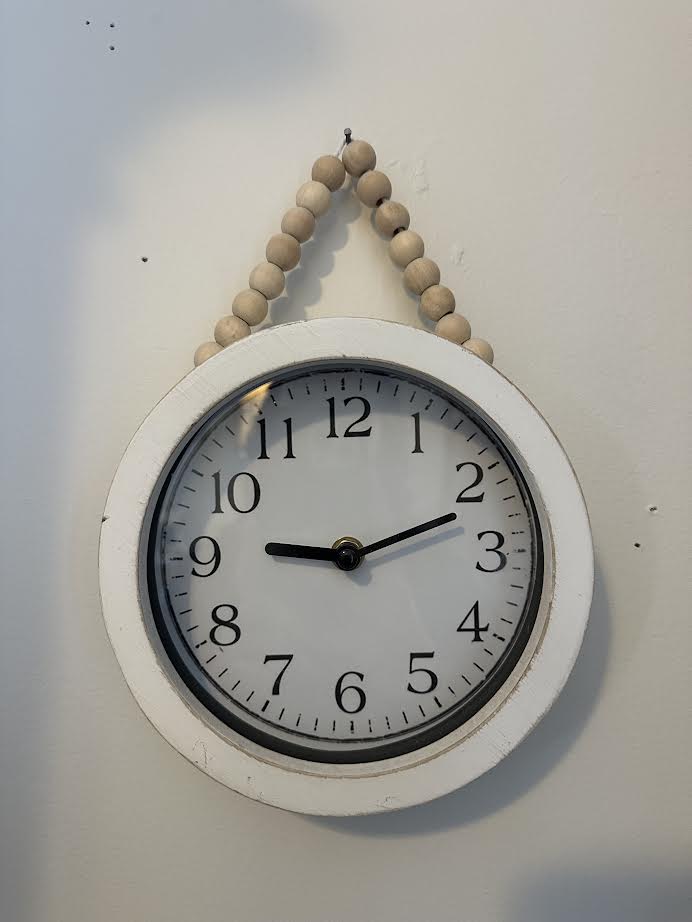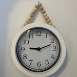 Add a rustic touch to your home decor with our Wooden Hanging Clock Decor. Made of high-quality wood and featuring a beautiful rustic paint, this clock will add warmth and charm to any room. The wooden beaded rope makes it easy to hang and adds a unique touch to its design. Bring a cozy and inviting atmosphere to your space with this charming clock.