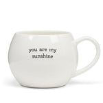 The shape of this "You Are My Sunshine" Ball Mug is as unique as its message is sweet! Crafted out of stoneware, this capacious 16 oz. mug in white features its charming message in subtle lower-case type — matched by the following lyric at the bottom of the mug to complement your favourite blend or brew of coffee or tea.