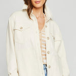 The Nicholson jacket is made of a textured cotton twill that has been washed for a perfectly lived-in look and feel. The classic shirt jacket silhouette features slash pockets, patch pockets, and a shaped hem detail. Pair it with the Warner short or Gilmore pant for a coordinated look.