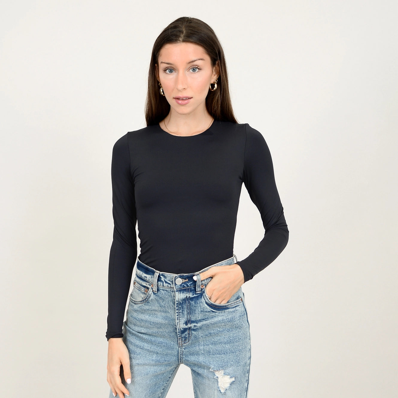 Our Roxi Crop High Crewneck Long Sleeve is an essential for your wardrobe. This comfortable and casual long sleeve features a crewneck cut and a stretchy fabric that hugs your body for a flattering fit. The perfect top for any outfit.