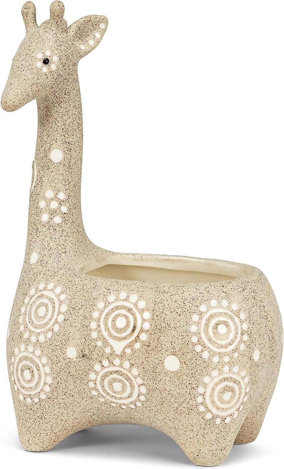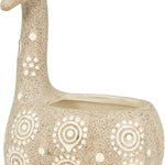 Add a touch of old-world charm anywhere with this adorable Giraffe Shaped Planter. Made of stoneware and accented with elegant white designs, this cute creature makes a wonderful home for small plants, cactus or succulents. Similar styled elephant shaped planter also available.