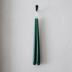 Our taper candles are handcrafted and handover-dipped for a superior depth of color. The interior of the candles remain white ensuring a clean and dripless burning that lasts approximately 11 hours. Sold as pairs 7/8" Base, fits any standard taper holder Lead Free Cotton Wicks Food Grade Paraffin Wax Handcrafted in Canada Note: Keep away from drafts. Exposing your tapers to a draft may result in some dripping and/or smoking. Keep wick trimmed to 1/4".