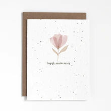 Our plantable seed paper cards are made from bio-degradable, post-consumer waste meaning no new trees are harmed. Each card is full of a blend of 6 different wildflower seeds, that are all tested for purity, non-GMO, and non-invasive. All cards are printed with non-toxic ink, and are left blank inside for your message.