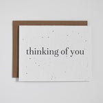 Our plantable seed paper cards are made from bio-degradable, post-consumer waste meaning no new trees are harmed. Each card is full of a blend of 6 different wildflower seeds, that are all tested for purity, non-GMO, and non-invasive. All cards are printed with non-toxic ink, and are left blank inside for your message.