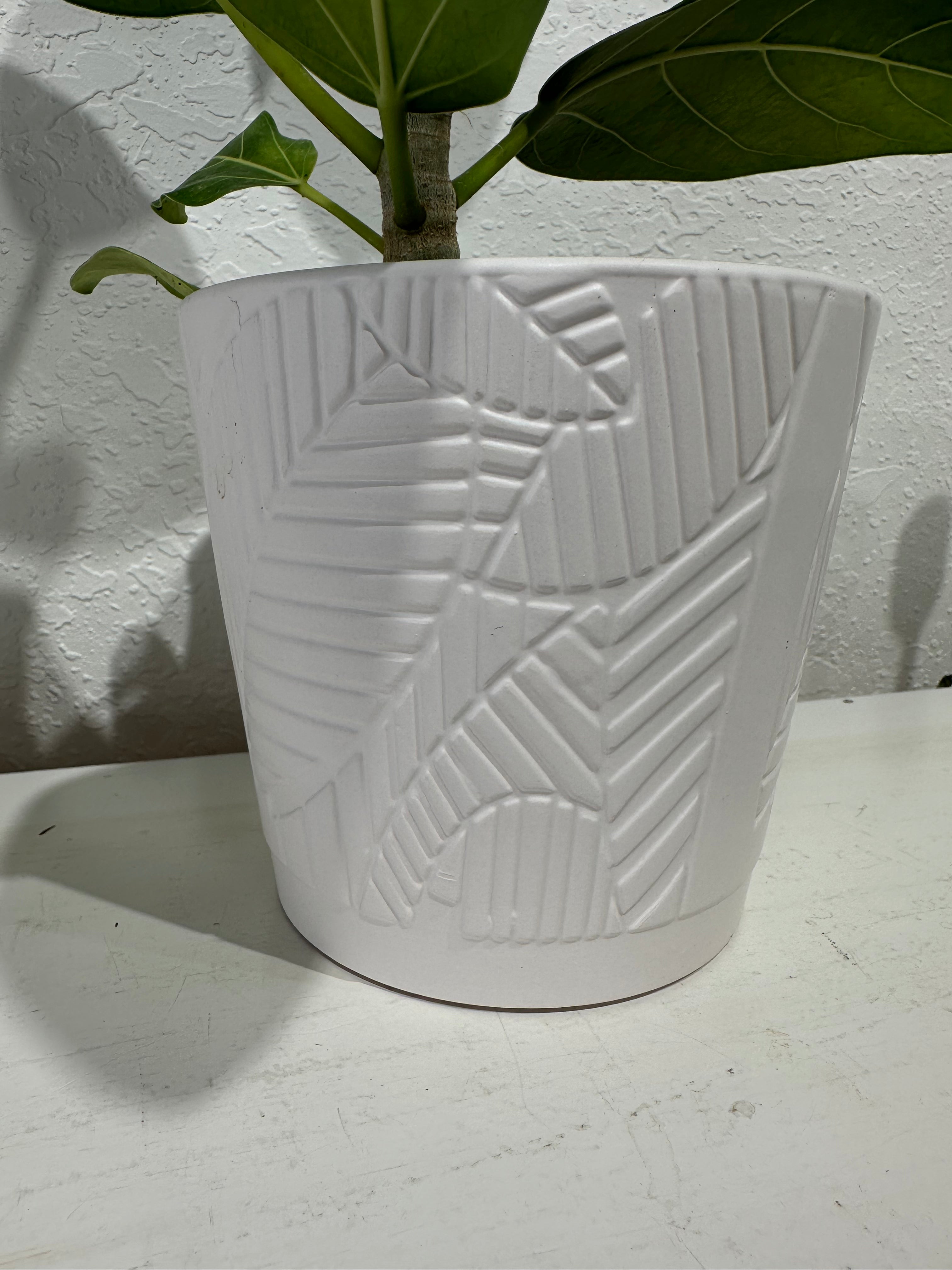Bring nature indoors with this stylish Abstract Leaf Print Pot. Crafted from durable porcelain with a glossy white finish, its modern abstract leaf print design creates a striking contrast, perfect for adding a touch of nature to any interior.