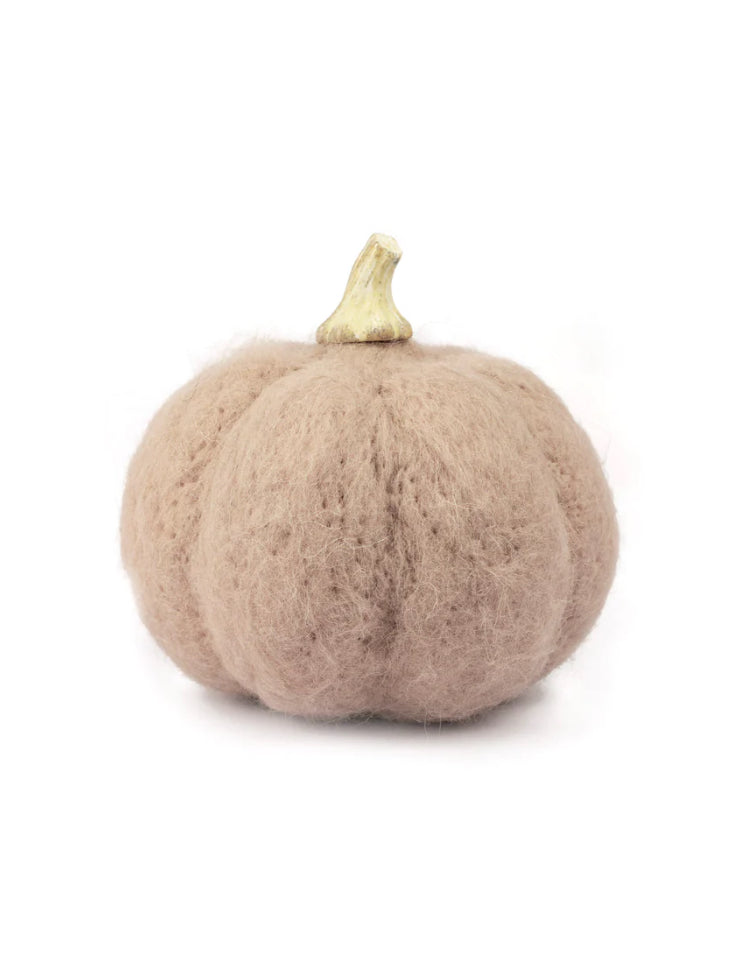 Decorate your harvest table with our adorable, lifelike felt pumpkins. Hand crafted from felted wool and capped with resin stems, they feature neutral earthen colours and look charming when displayed in a bountiful pumpkin patch. Spot Clean.