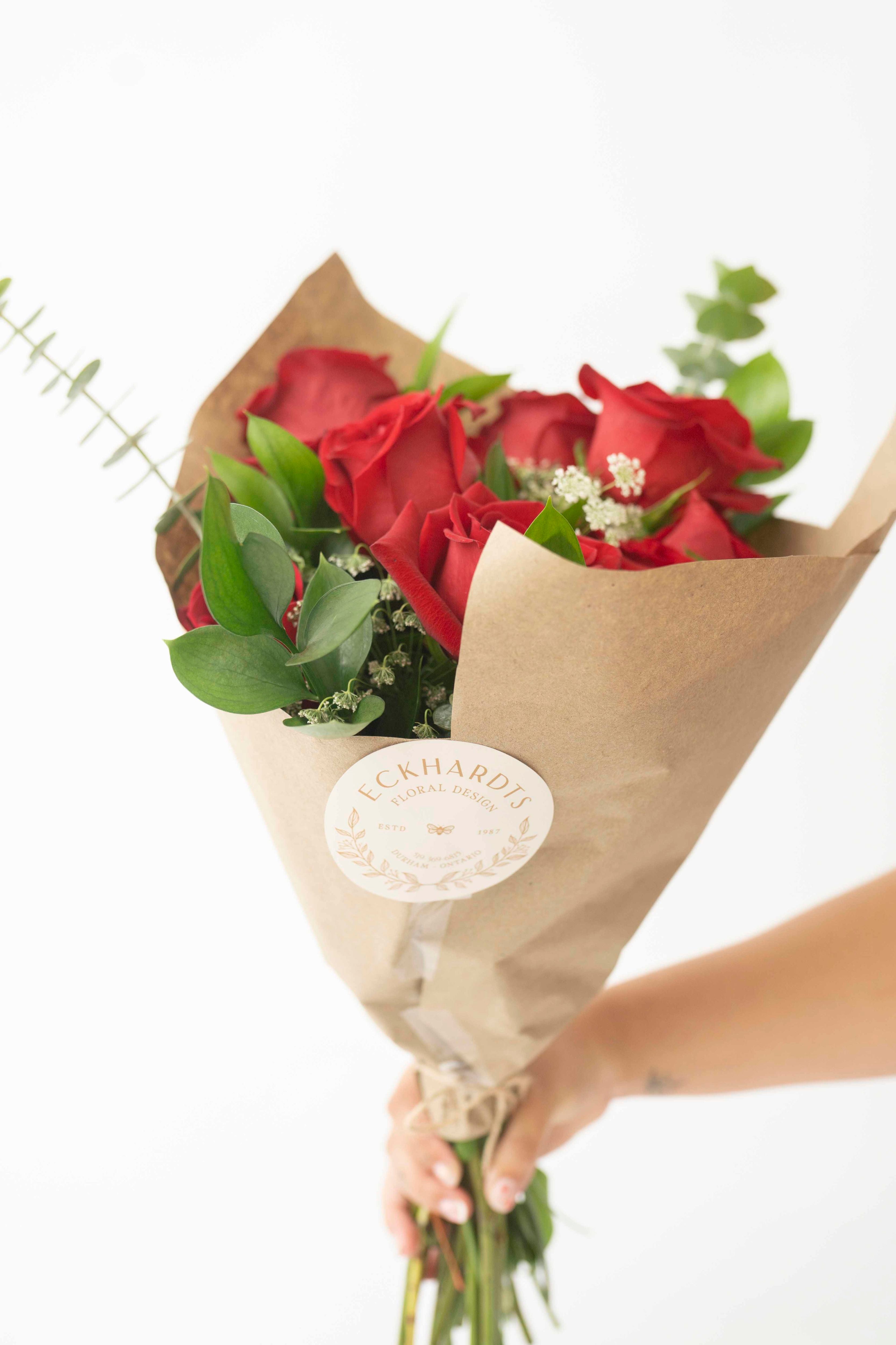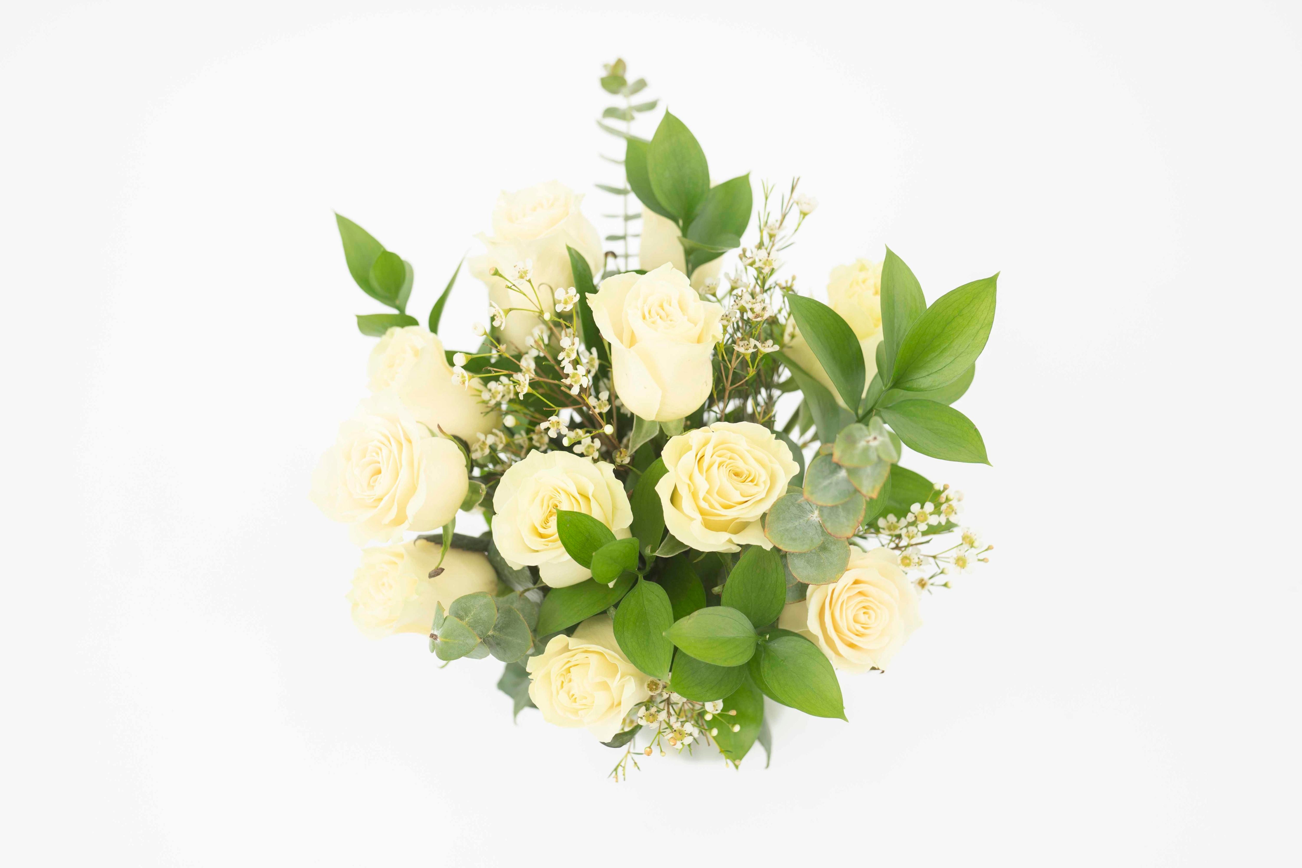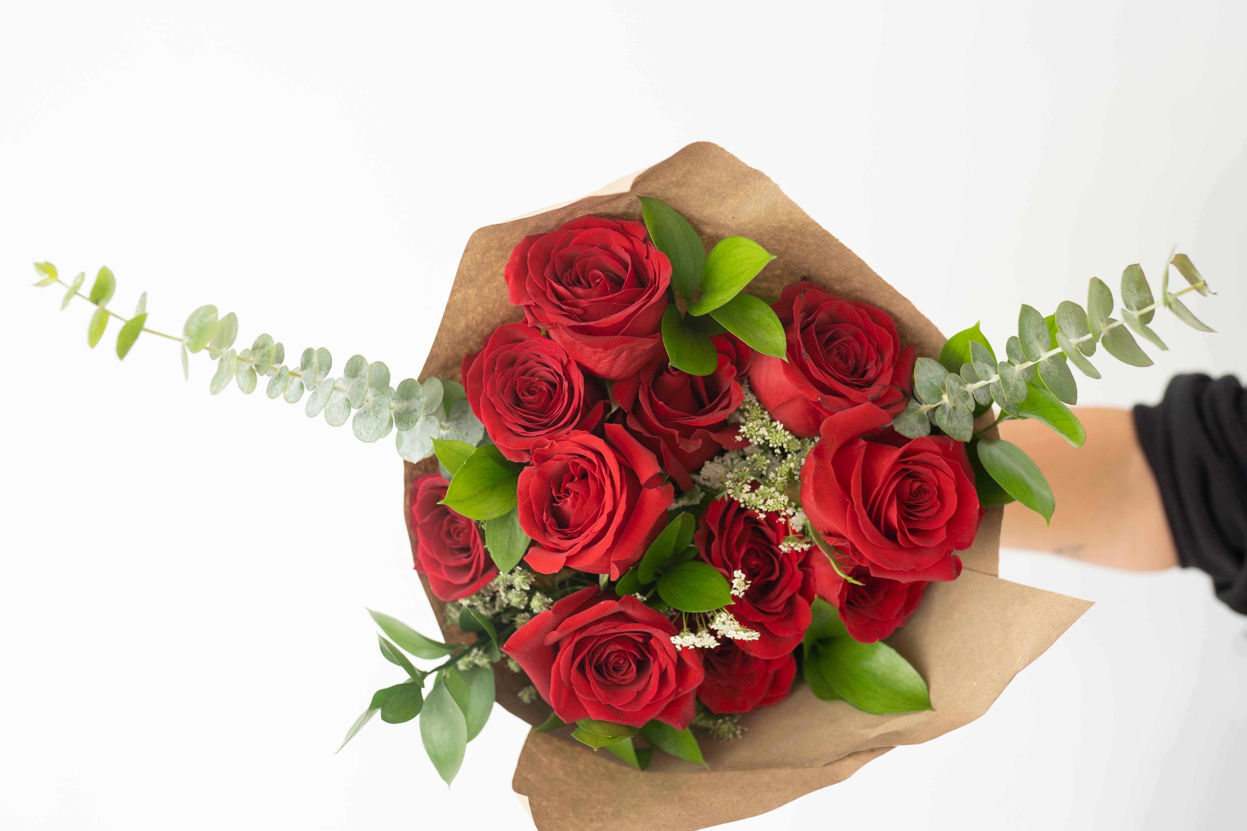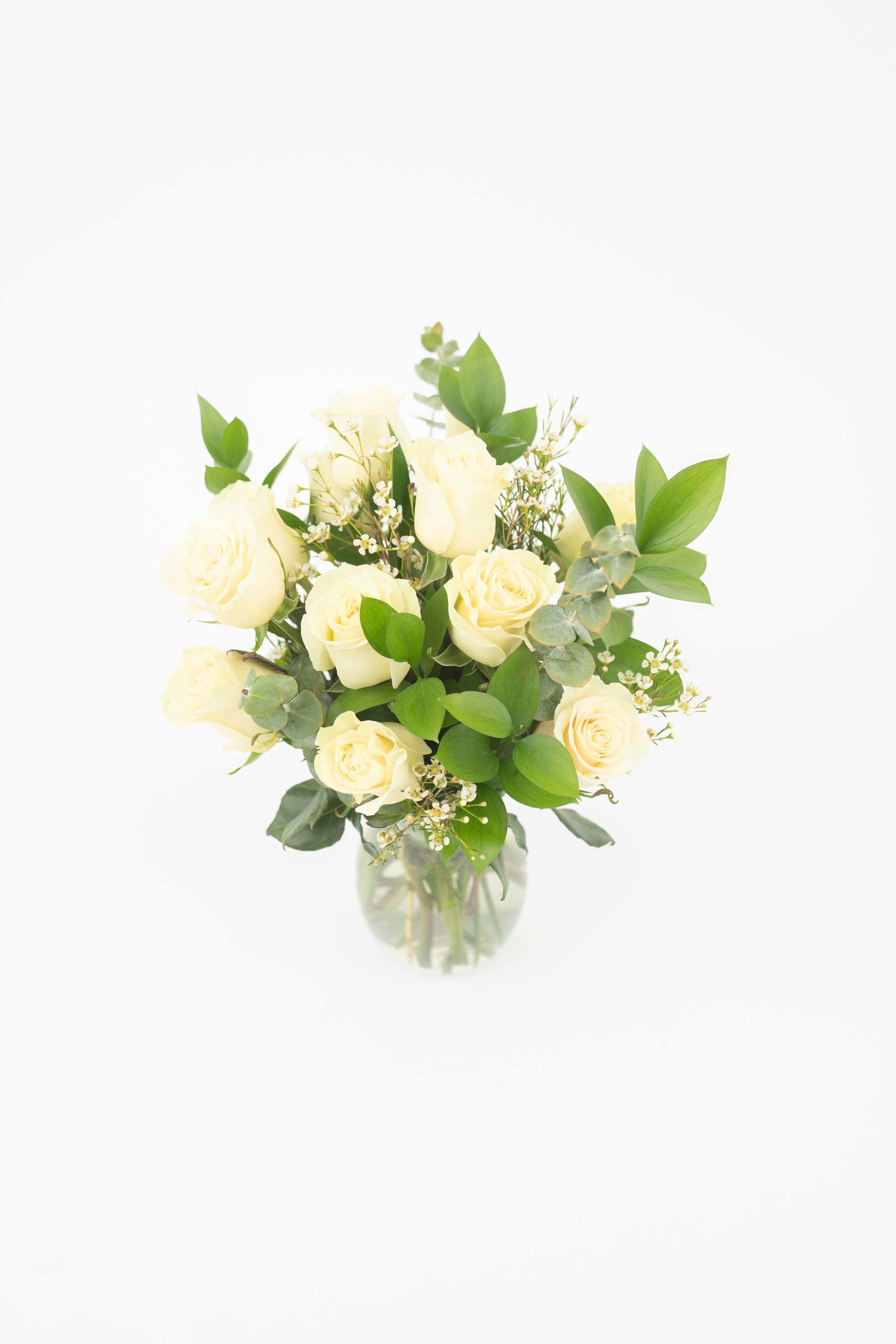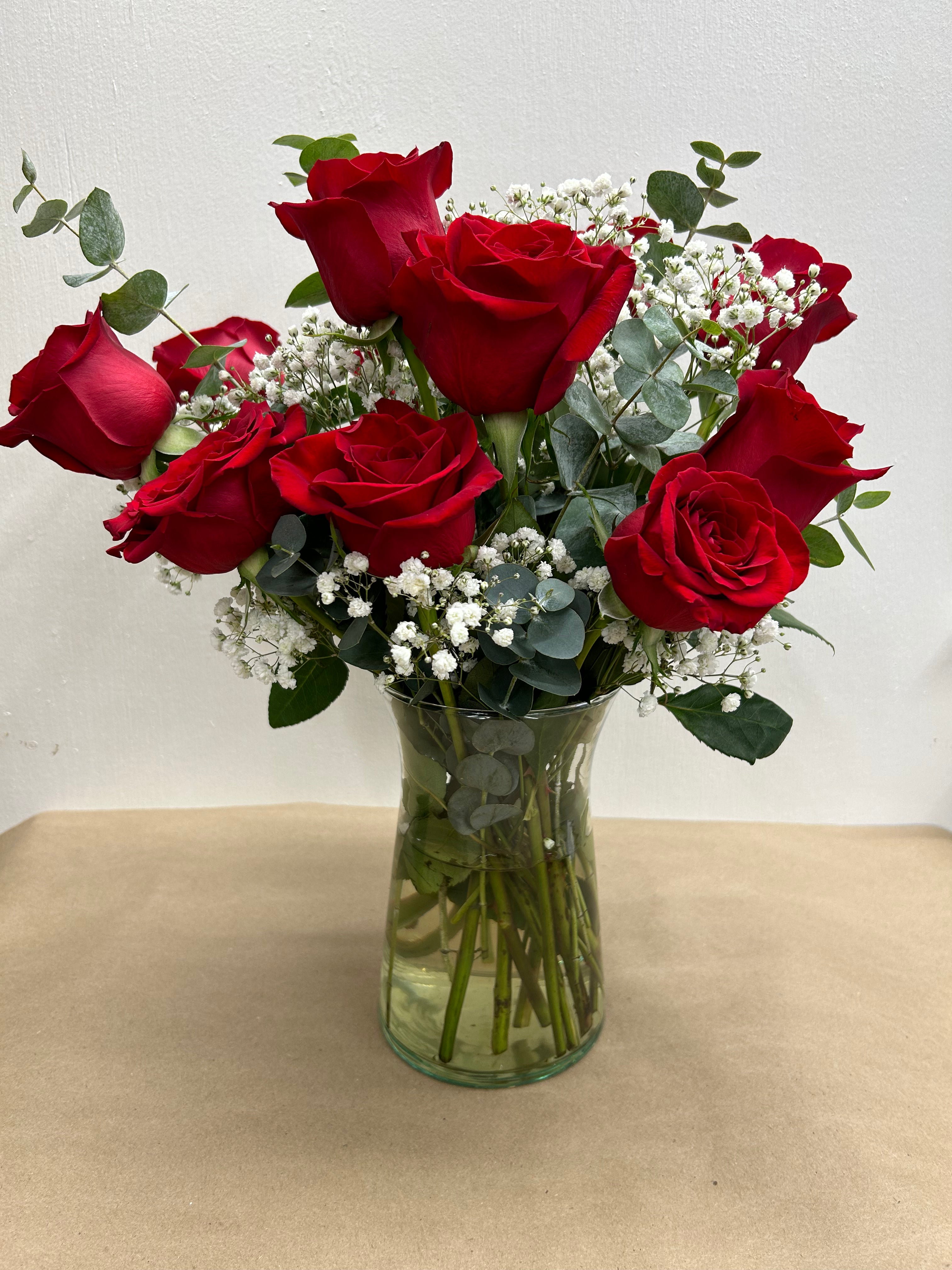 A dozen or Half, Red or White Roses bouquet or add a Vase.