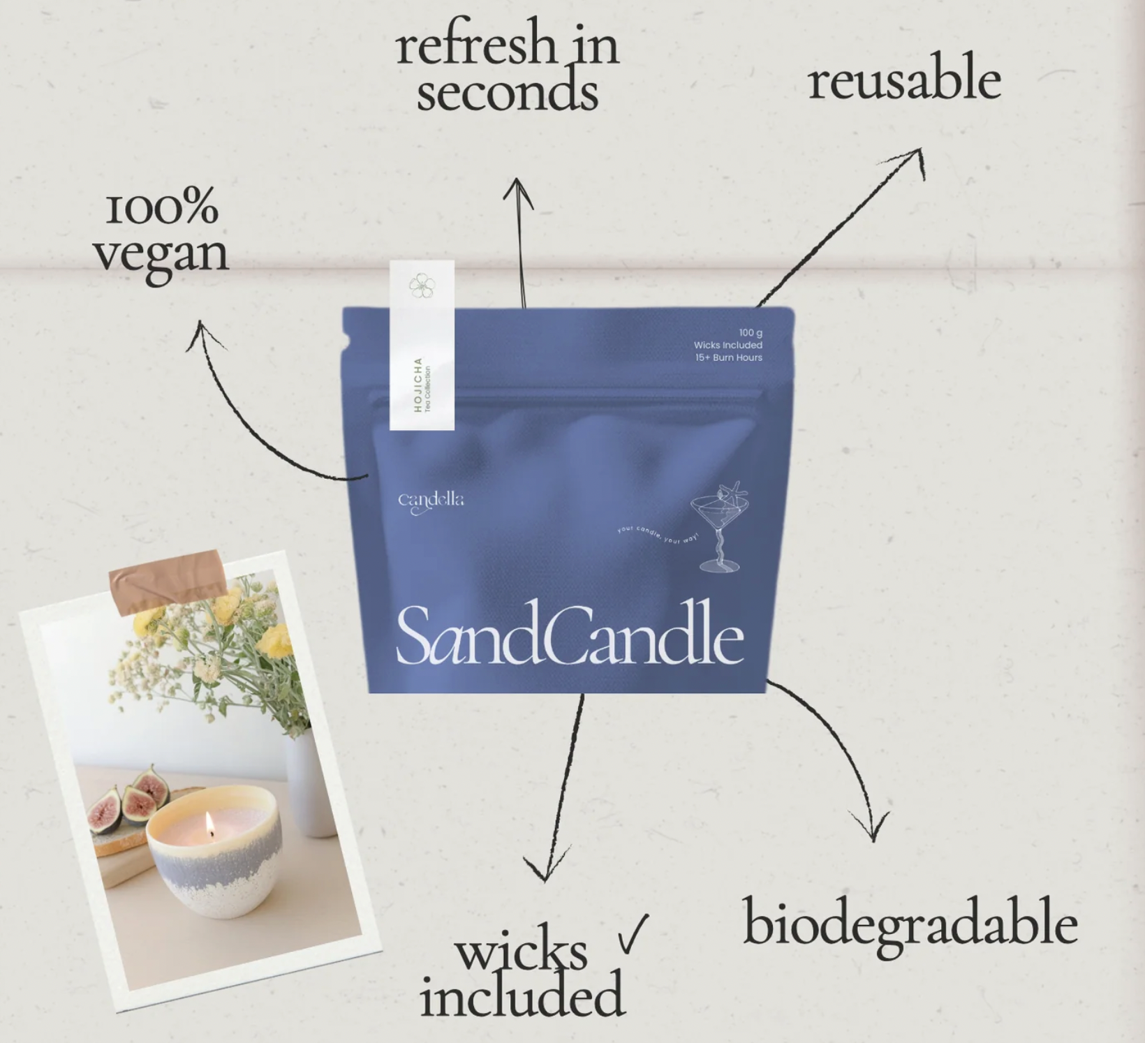 Old candle containers, thrifted vintage glassware, or handmade ceramics—however you like it, our Sand Candles are endlessly adaptable and super easy to create. Just pour, trim, and light—it’s that simple!