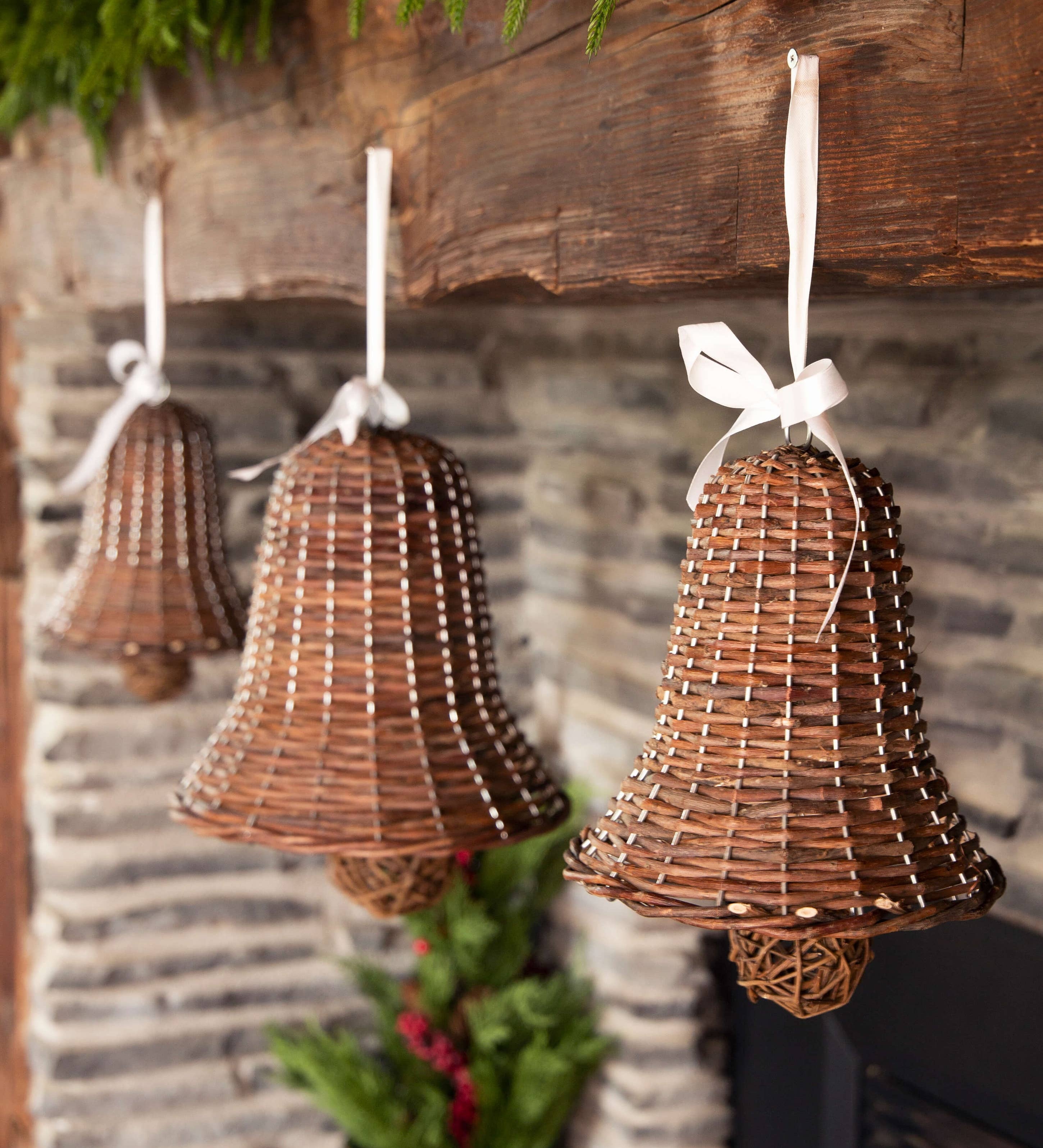 Unpeeled willow bell with white ribbon