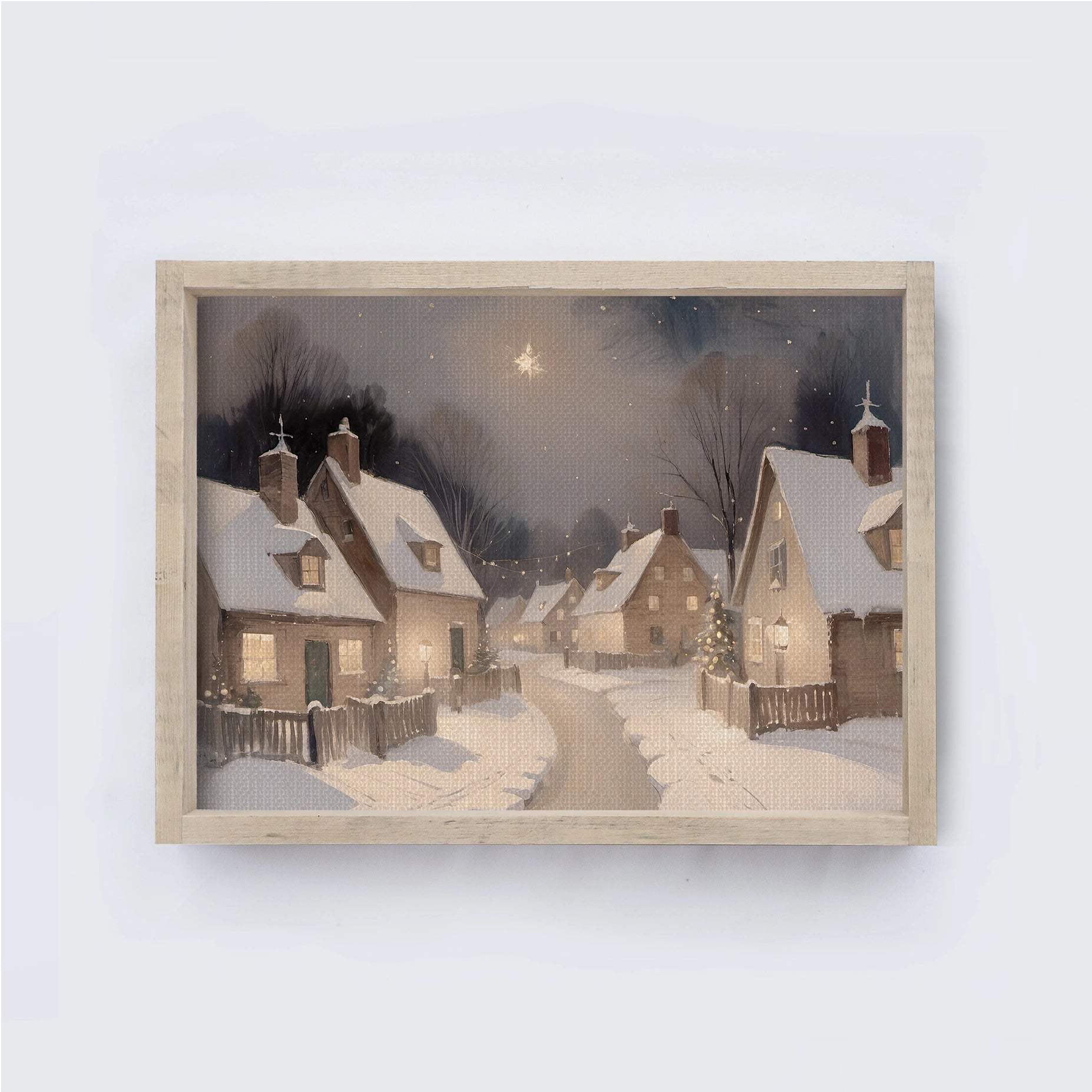 Vintage Style Framed Art - Snowy Christmas Village