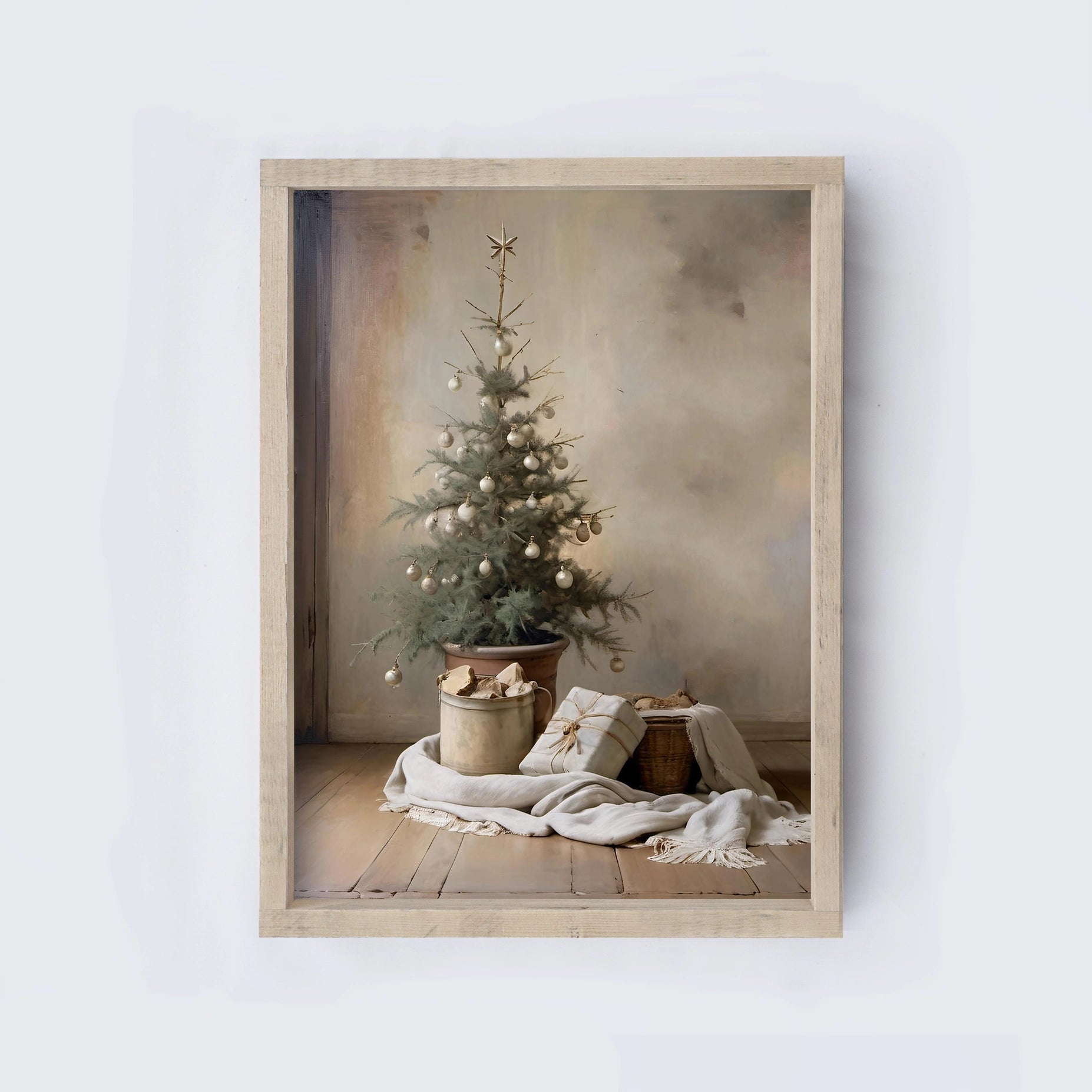 Vintage Style Framed Art - Neutral Christmas Tree