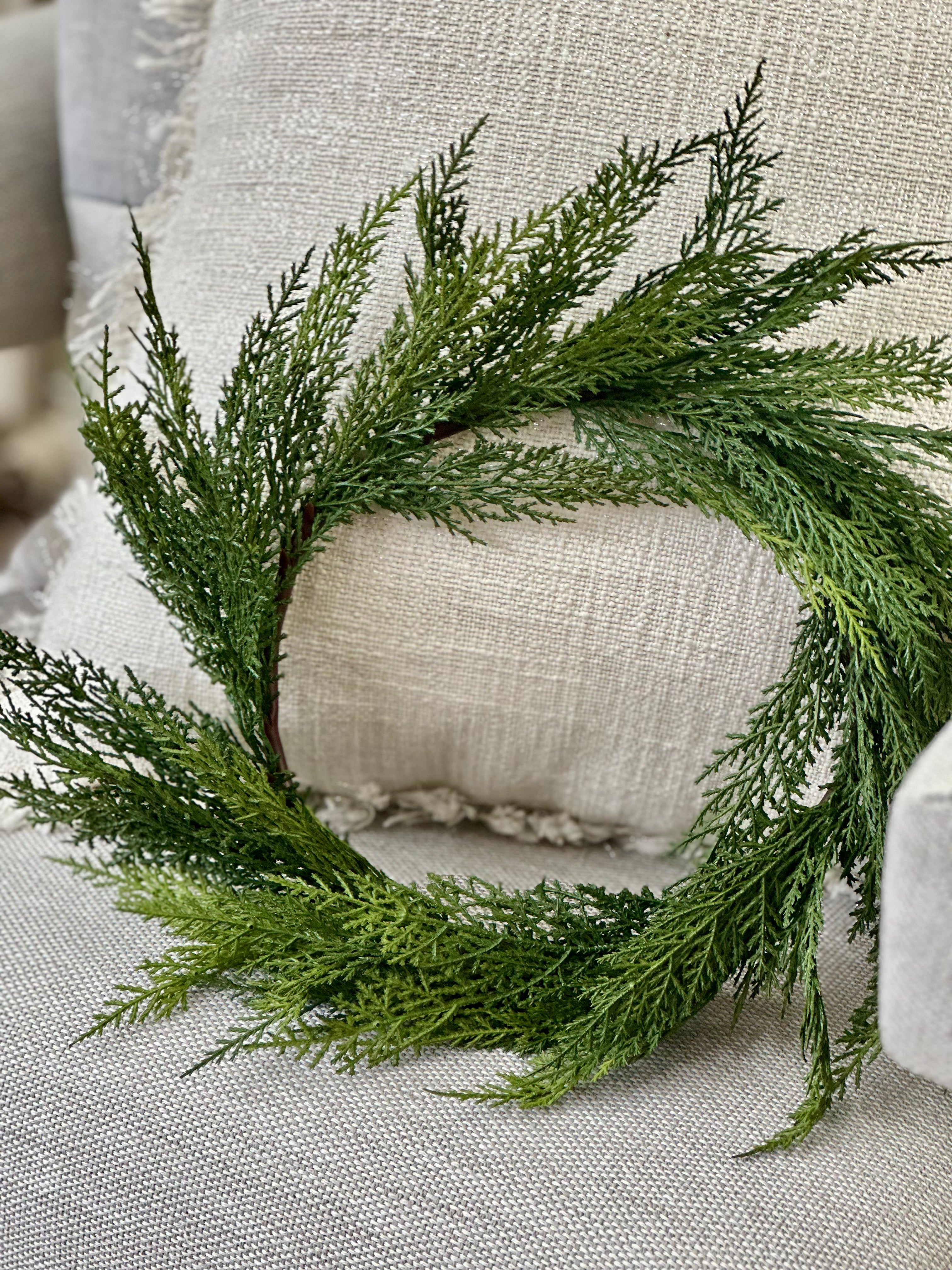 Welcome the holidays with this 12" cedar wreath. Made with artificial cedar, this wreath will bring the festive spirit to your home without the hassle of real branches. Hang it on your door or use it as a centerpiece to add a touch of nature to your decor.