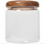 - Material: Body: 100% Glass Lid: 100% Acacia