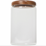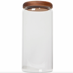 This glass jar with acacia wood lid offers an elegant food storage solution. Made of food-safe materials, this jar is stylishly suitable for use in and out of the kitchen. Features a wide mouth and silicone rubber seal to preserve freshness.