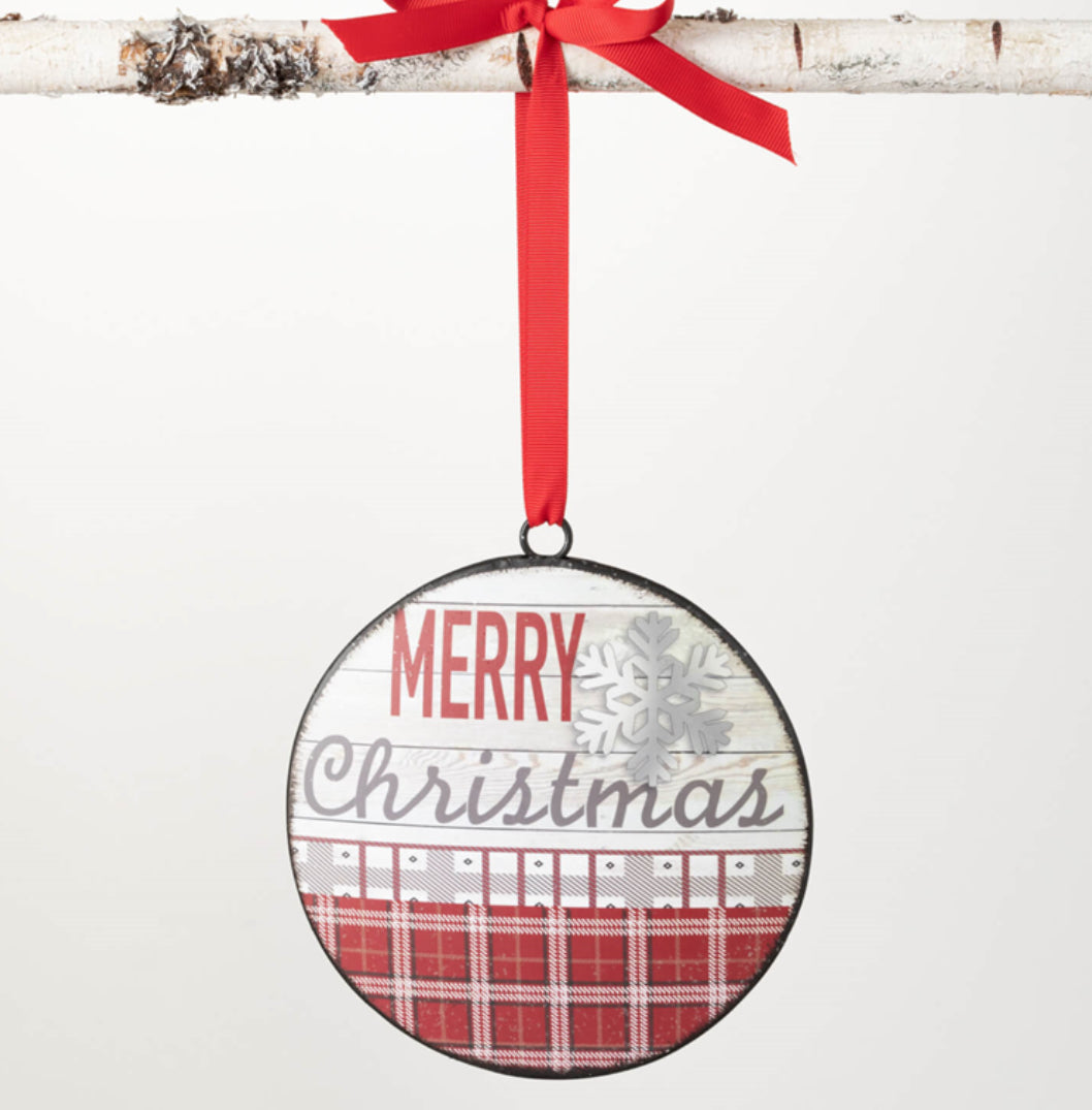 This classic plaid disc ornament is crafted from durable metal to bring festive cheer to your Christmas tree. The stylish yet simple design of this ornament will bring timeless beauty to your holiday celebrations for years to come.