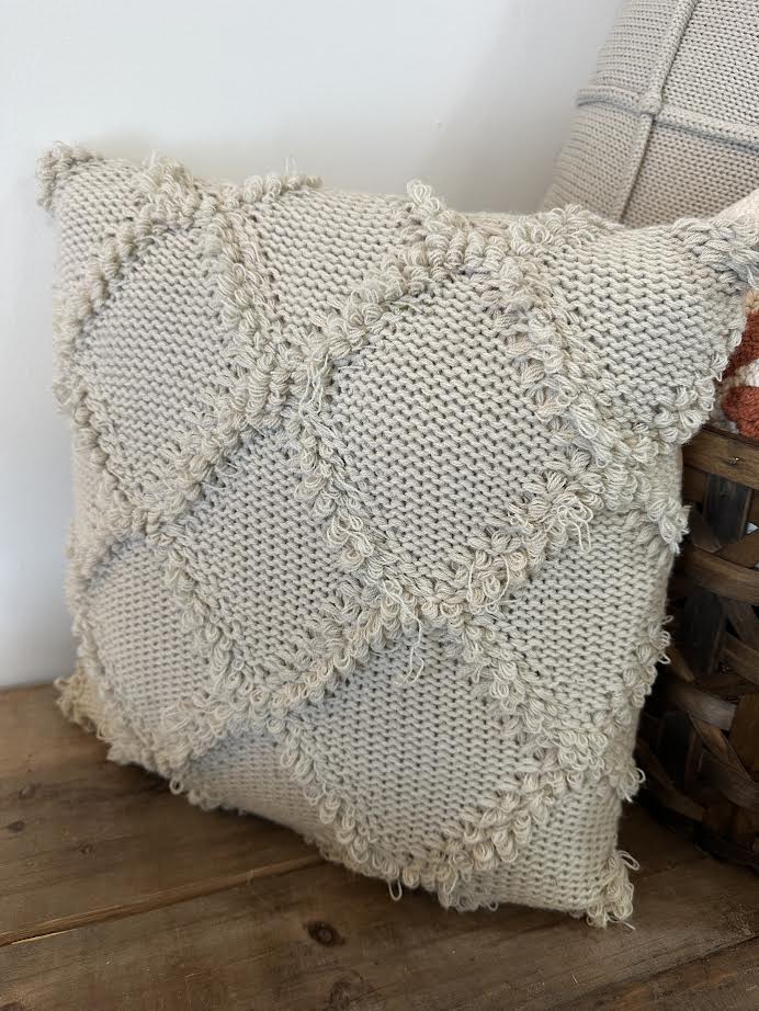 Introduce some cozy texture and style into your living space with our Beige Textured Throw Pillow. This knit pillow features a charming plaid design, adding a touch of warmth and character to any room. Relax and unwind in comfort, thanks to the soft and inviting texture of this must-have home accessory.