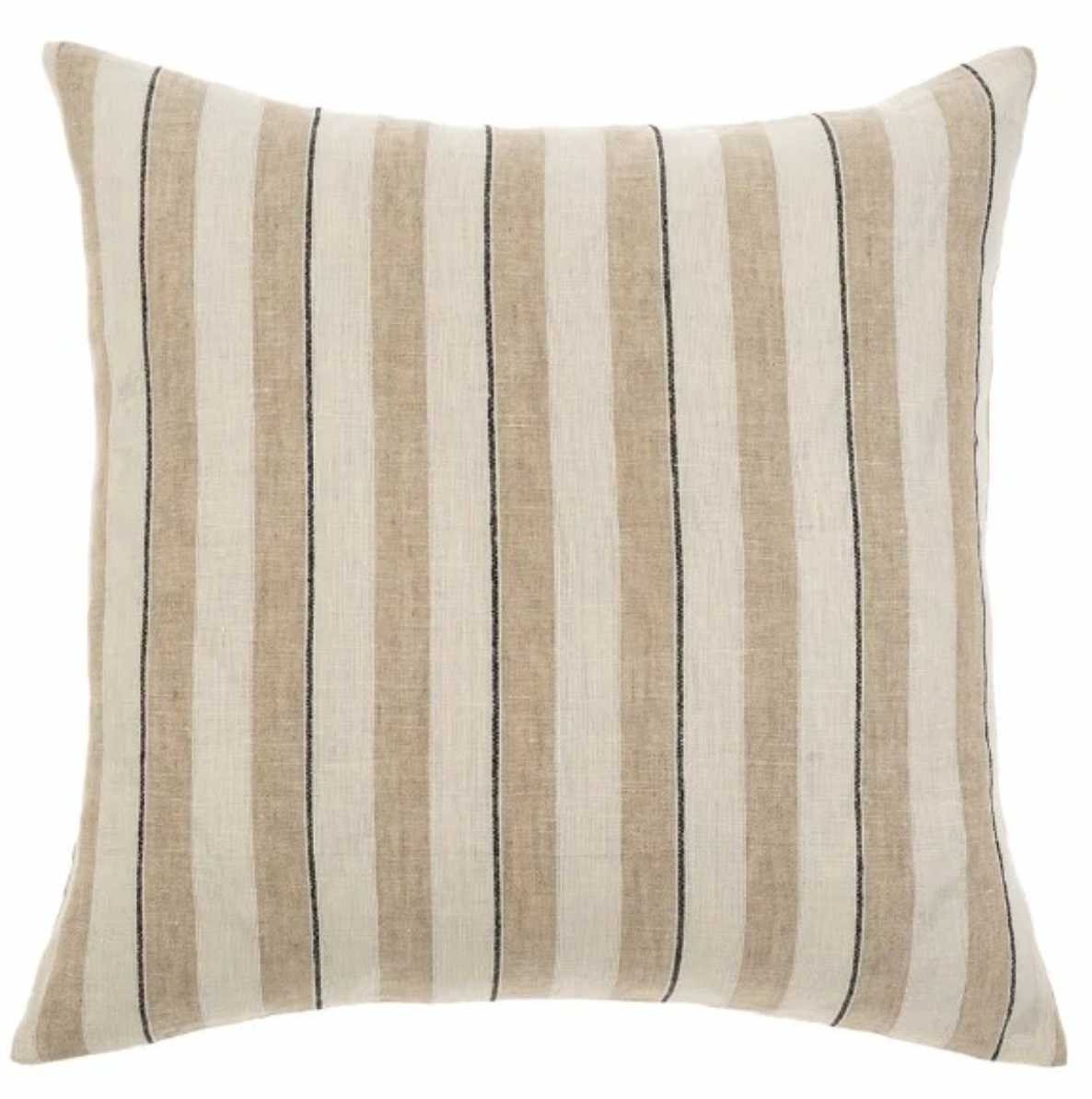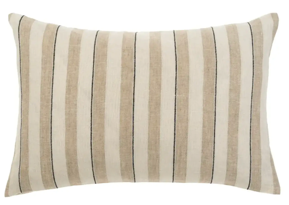 The Seaside Stripe Pillow features timeless stripes in 100% linen on the front, and solid cotton weave in a complementary tone on the back. Each pillow includes a premium Responsible Down Standard (RDS) certified feather/down filler. Hand wash recommended
