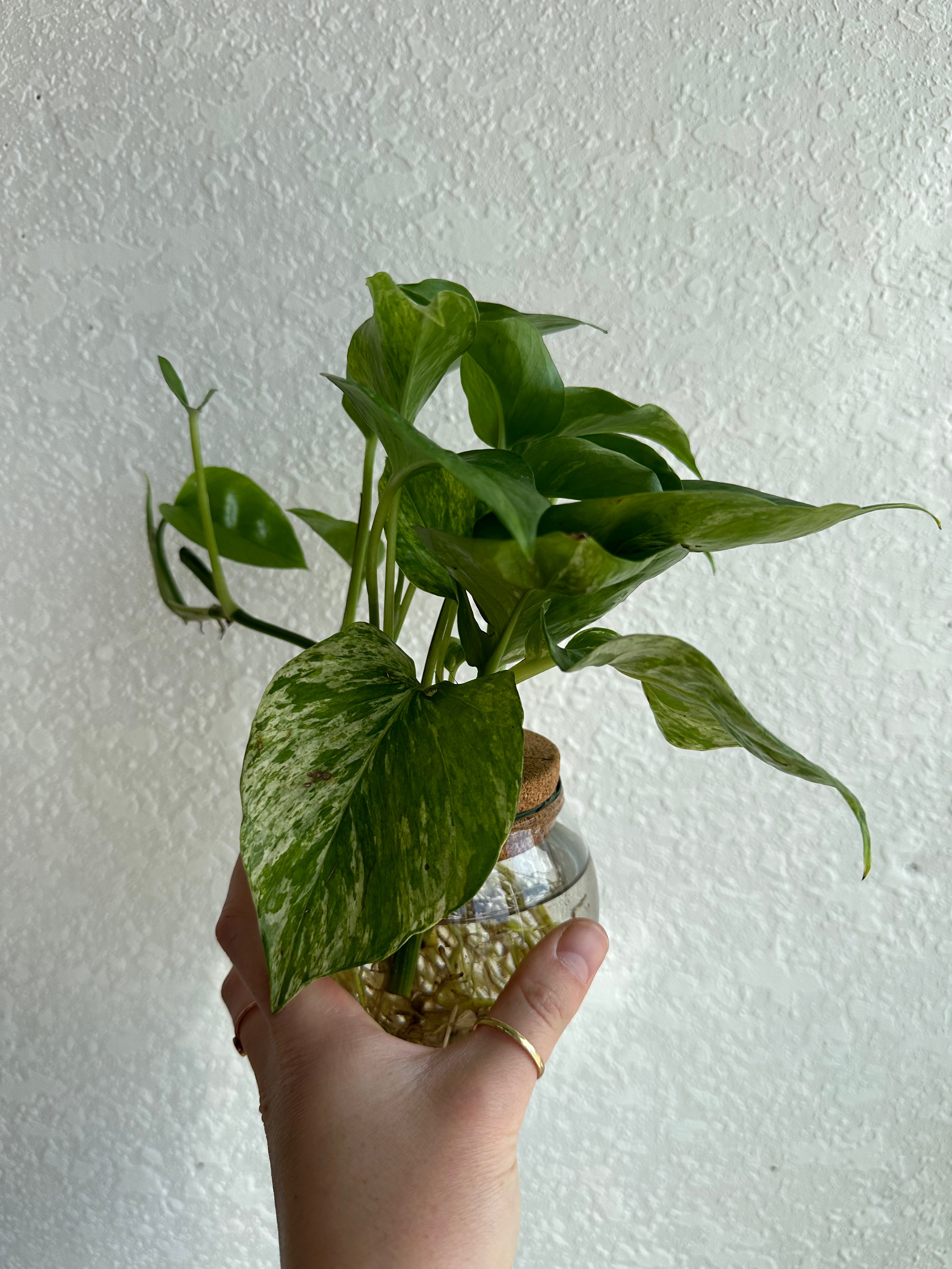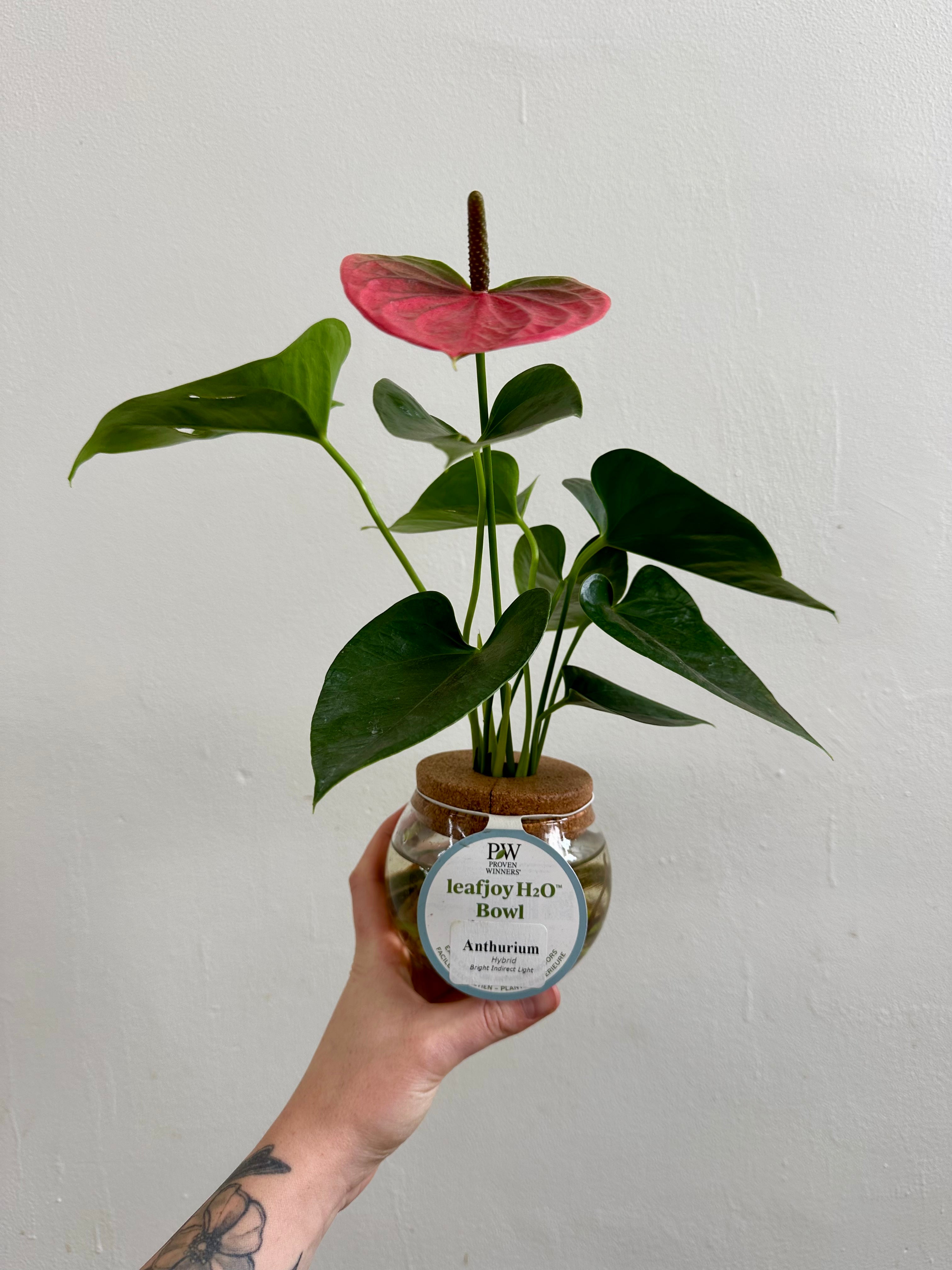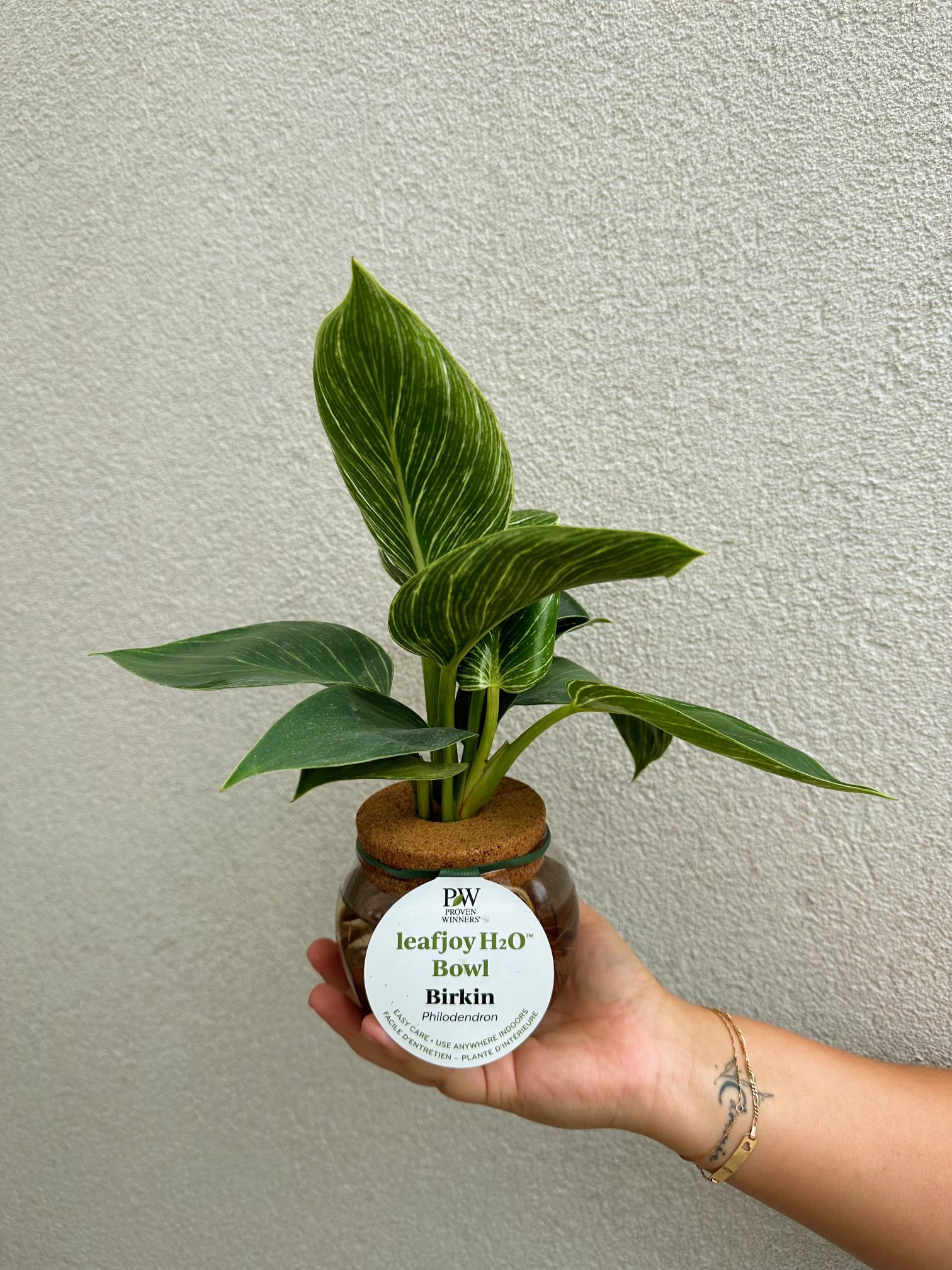 Discover the charming H2O Bowl collection - assorted fishbowl containers with cork lid openings perfect for propagating your favorite plants. Each container comes with a different plant variety, including Birkin Philodendron, Pothos, and Anthurium. These decorative propagation stations offer a cute, fun way to enjoy low-maintenance greenery in your space. Simply refill with water when levels get low for effortless plant care that brightens any room!