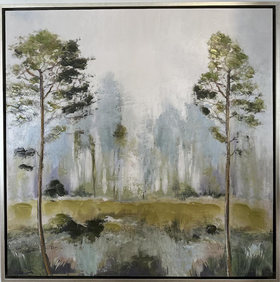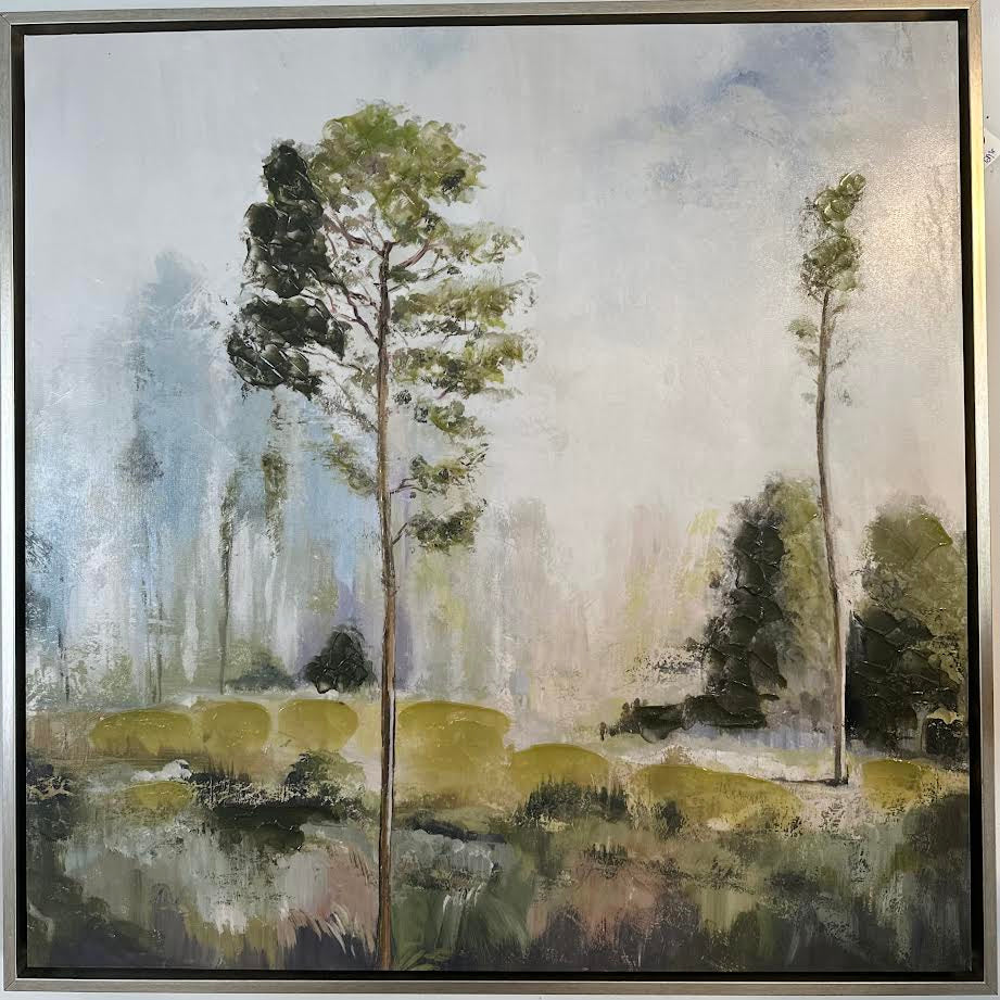 Elevate your home decor with our Large Framed Canvas Artwork. This stunning statement piece features a serene landscape with trees, expertly crafted on a silver frame canvas. Perfect for any room, this artwork adds a touch of elegance and nature to your space. Enjoy a peaceful ambiance with this premium piece.