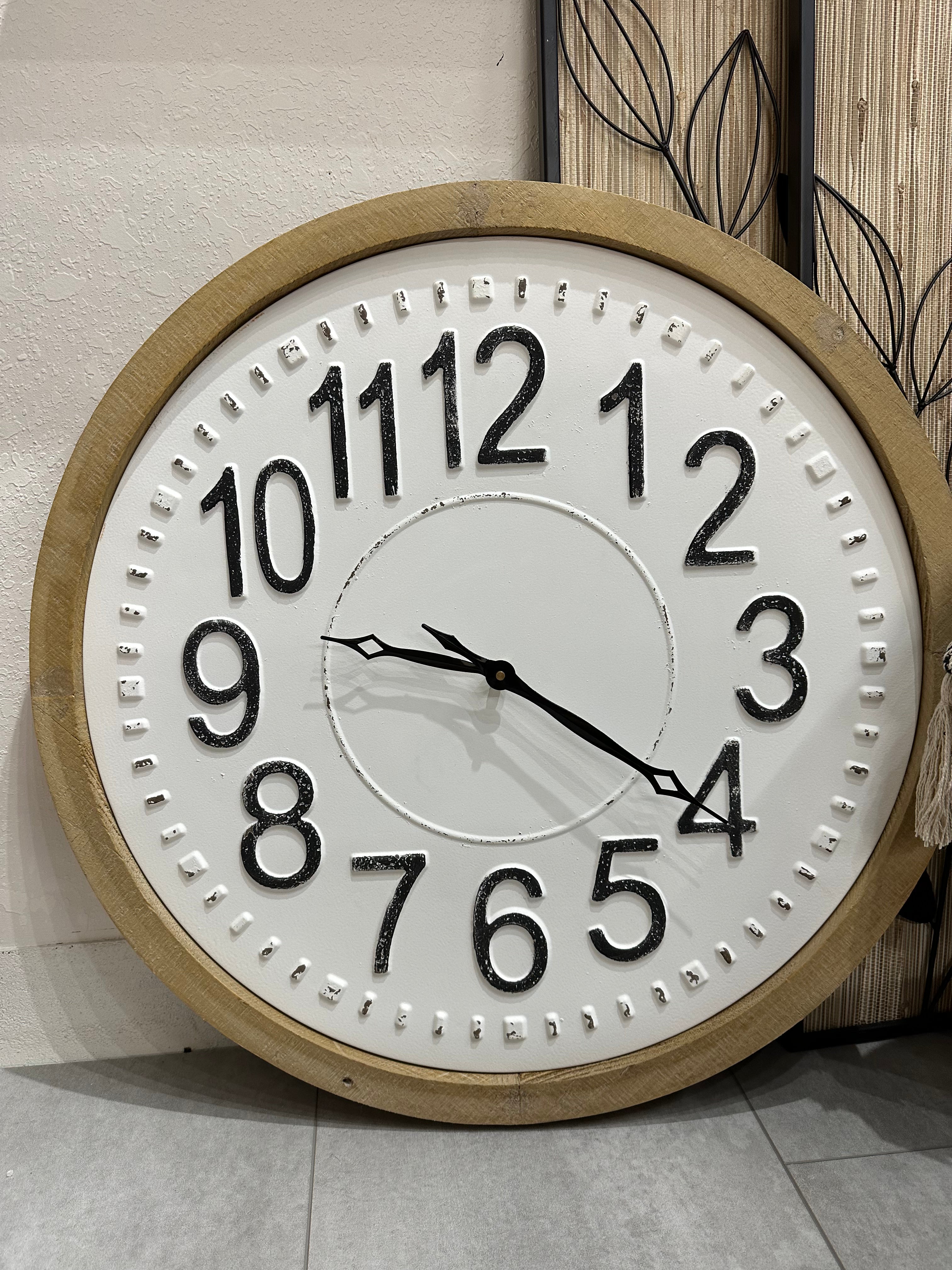 This stylish clock combines a metal and wooden frame for a refined look and feel. The combination of metals and woods creates a modern accent piece that is perfect for any room. Its classic design is timeless, allowing it to fit in with any home décor.