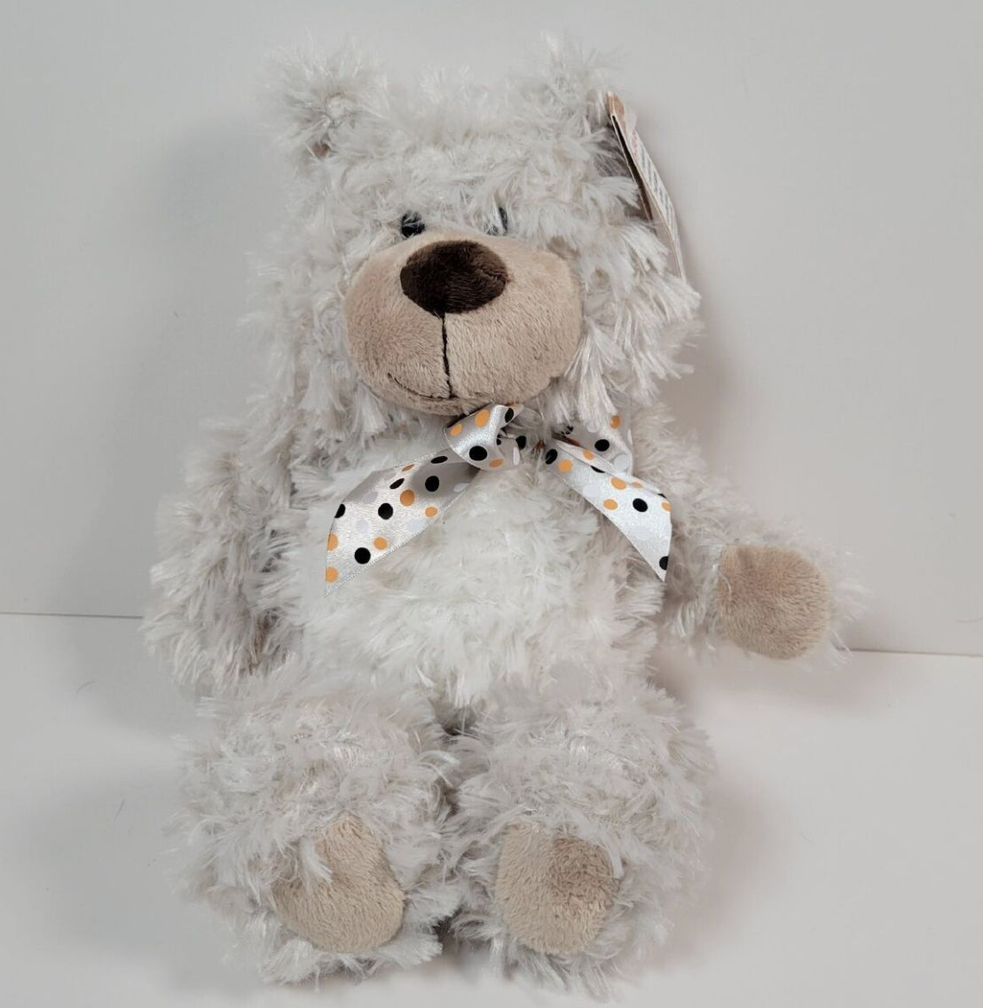 "This adorable white stuffed bear with a polka dot bow is the perfect cuddly companion for anyone looking for a cute and soft addition to their stuffed animal collection. Its soft fur and charming bow make it a delightful gift for all ages. Bring this bear home today and add a touch of sweetness to your life."