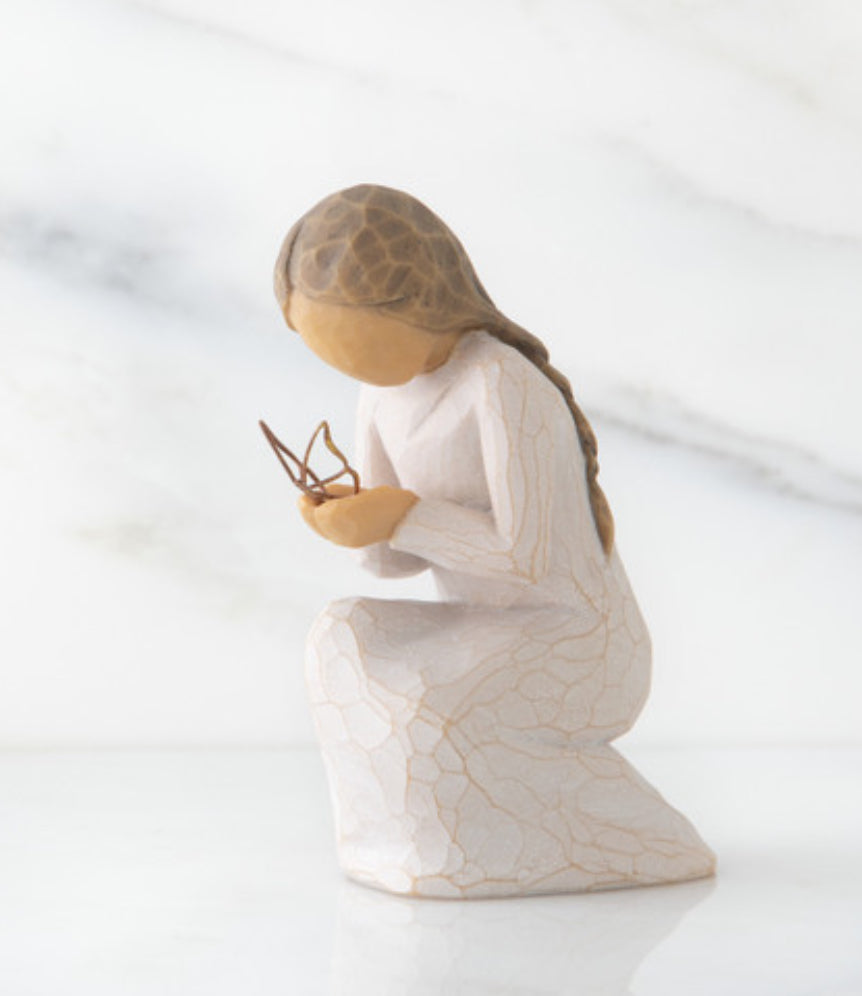 This figure can be a little reminder to yourself, or someone close to you, of revelations and discoveries found in quiet moments when we are still and present. Perhaps a best wishes gift to a graduate about to start a new venture… or a hopeful piece for one facing a major decision. Or a reminder to marvel at the miracle of butterflies in nature!