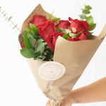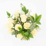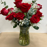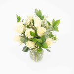 A dozen or Half, Red or White Roses bouquet or add a Vase.