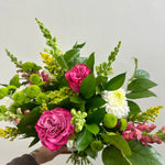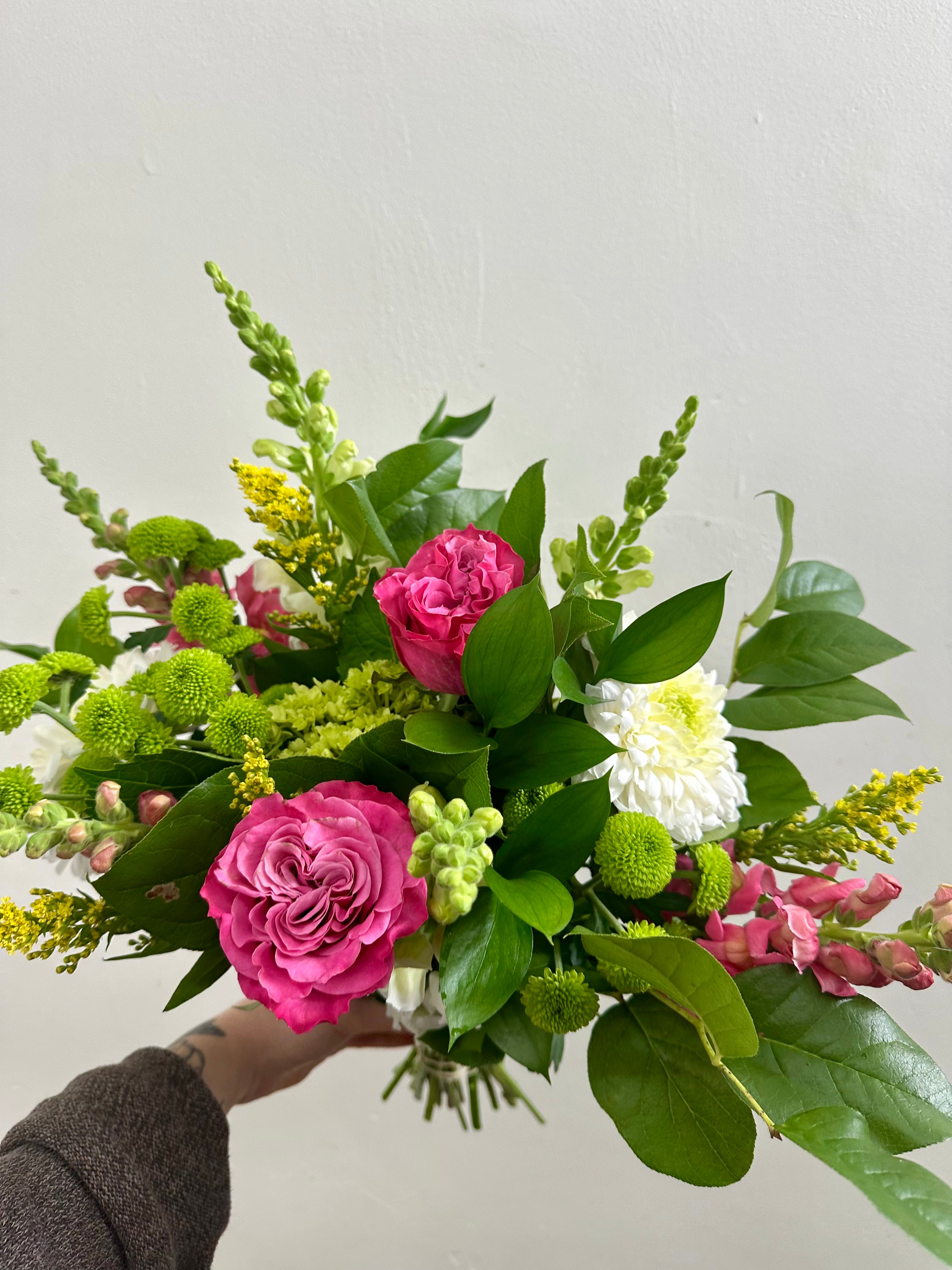 Freshen up any room with our Strawberry Fields Bouquet. This vibrant bouquet features a beautiful mix of pink, yellow, and green fresh-cut flowers, bringing a touch of nature into your home. Perfect for brightening up your day or as a gift for a loved one.