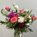 Transform your space into a tranquil oasis with our Summer Meadow Blooms Arrangement. This fresh flower arrangement is handcrafted with a delicate mix of pink, purple, and white blooms, making it the perfect centerpiece for any occasion. Brighten up any room and add a touch of natural beauty to your decor.